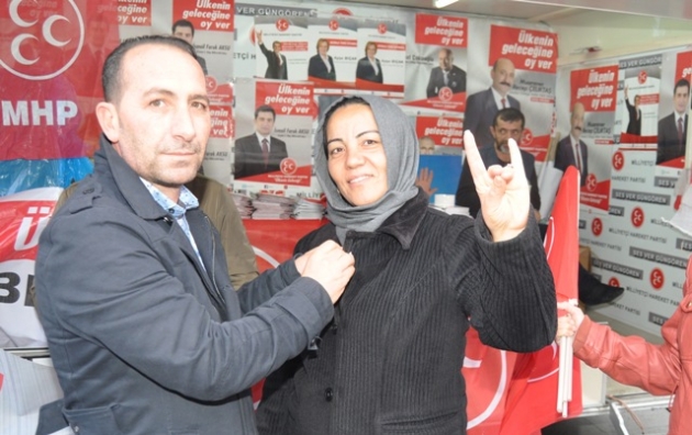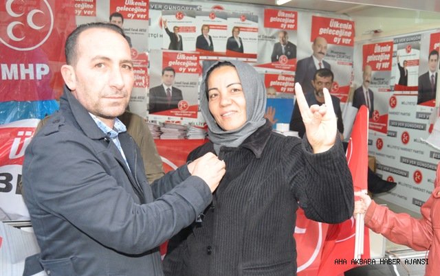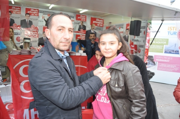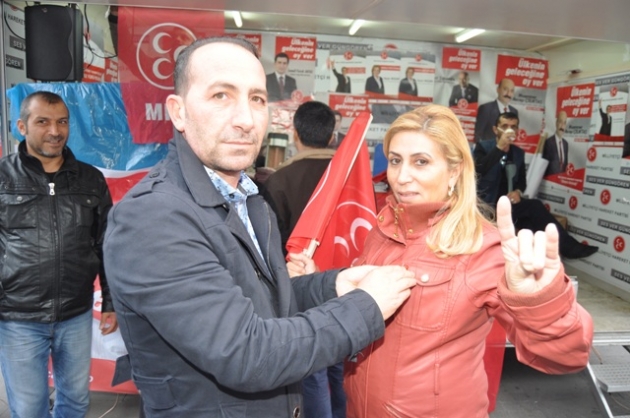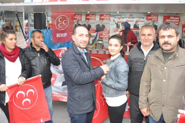 Güngören Kale Center önünde stant açan MHP Güngören teşkilatı partililerine rozet taktı.