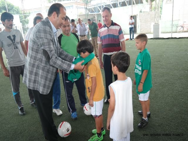 Ceyhan Belediye Başkanı Alemdar Öztürk futbol yaz okulunun çalışmalarına başlaması nedeniyle düzenlediği ziyarette spor malzemesi dağıttı.