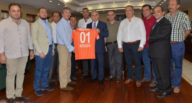 Ziyaret sonunda kulüp yöneticileri Vali Mustafa Büyük’e üzerinde isminin yazılı olduğu 01 numaralı takım formalarını hediye ettiler.