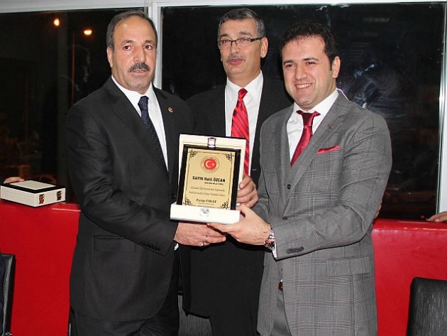 Büyükşehir Belediye Başkanı Celalettin Güvenç’e ve Milletvekili Halil Özcan’a Öğretmenevinin yapımında ve Eğitime vermiş olduğu desteklerden dolayı Kaymakam Eyüp Fırat tarafından plaket takdim edildi.