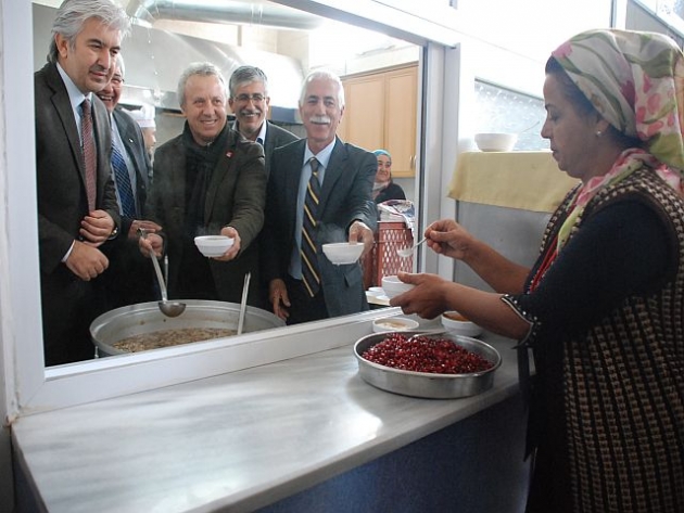 Alevi dedesinin kardeşlik duasından sonra, Alevi Kültür ve Cem Evi Yönetim Kurulu başkanı Hakkı Camkıran yaptığı konuşmasına Muharrem ayının 10. Gününde her mümin kişinin hüzünlendiği ve kederlendiği gün olduğunu, hayatında en ufak bir riya, menfaat, hırs olmayan, batıl ve zulme karşı mücadele hazreti Hüseyin’in Kerbela’da şahadete uğramasının tüm inanları üzdüğünü belirterek, “Ancak bu gün üzülerek tanık oluyoruz ki İslam coğrafyasında, son yıllarda yaşanan olaylar, meshebi meşrebi ne olursa olsun, Kerbela’yı hazreti Hüseyin ve arkadaşlarını hala doğru okunmadığını, doğru anlanmadığını görüyoruz. Onun içindir ki bu gün gönül cğrafyamızda nice Kerbela’lar yaşamaya devam ediyor. Kardeş kanı akmaya devam ediyor. Müslümanların izzet ve onuru tarihte hiç olmadığı şekil ile bu gün bizzat birbirlerinin eliyle yok ediliyor” dedi. Başkan Hakkı Camkıran’ın konuşmasından sonra, Camkıran ve Belediye başkanı Salih Hızlı, AKP ilçe başkanı İsmail Hakkı Şenyiğit, CHP İlçe başkanı İsmail Fikirli, MHP ilçe başkanı İbrahim Uğurlu aşure kazının başına geçip sıraya girenlere aşure dağıttılar.