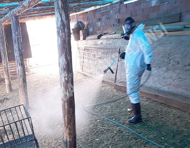 Manisa Büyükşehir Belediyesi Sağlık İşleri Daire Başkanlığı Haşere ile Mücadele Şube Müdürlüğü Ekiplerince toplu ölümlerin yaşandığı bölgedeki hayvan ahılarında dezenfekte ilaçlaması yapıldı.