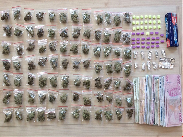 AHA / ANKARA - İl Jandarma Komutanlığı ekiplerinin Etimesgut ilçesinde yaptıkları istihbari çalışmalar sonucunda uyuşturucu satıcısı olduğu tespit edilen K.Ç ye operasyon için düğmeye basıldı. Uyuşturucuyla mücadele kapsamında yapılan operasyon neticesinde K.Ç. isimli şahsın arabası ve üstünde yapılan aramalarda, 84 paket plastik ambalajlı esrar maddesi, 47 adet sentetik hap, 10 adet folyoya sarılı kokain maddesi yakalanıp, üzerinden çıkan 4.200 TL ile 100 amerikan dolarına da el konularak K.Ç tutuklanarak cezaevine gönderildi.