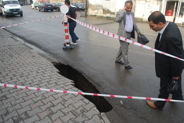 Kısa süre sonra olay yerine gelen belediye ekipleri toprak dökerek oluşan çukuru kapattı.