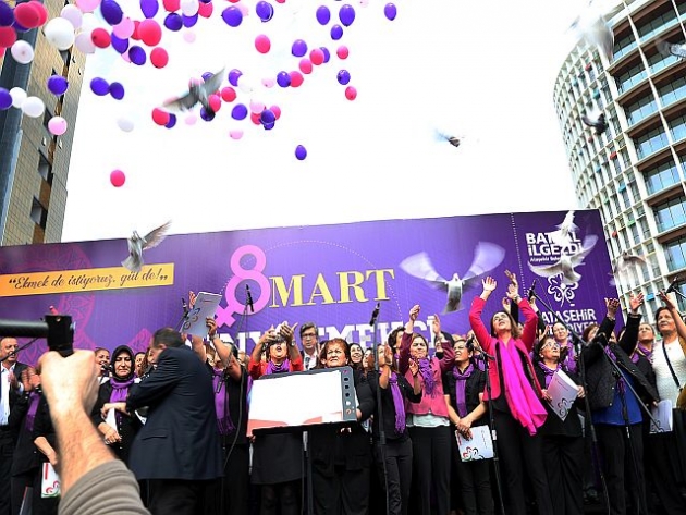 Ataşehir Emekçi Kadınlar Korosu’nun seslendirdiği barış türküsüne hep birlikte eşlik eden kadınlar güvercin uçurarak barış çağrısı yaptı.
