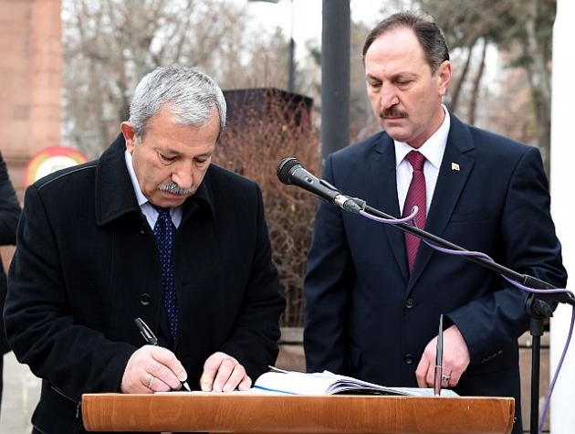 13 Şubat Cumartesi günü saat 10.00’da düzenlenen ve kalabalık bir protokolün katıldığı törende; çelenk sunumu, saygı duruşu ve İstiklal Marşı’nın okunmasının ardından Büyükşehir Belediye Başkan Vekili Şefik Şengün Anıt Şeref defterini yazarak imzaladı.