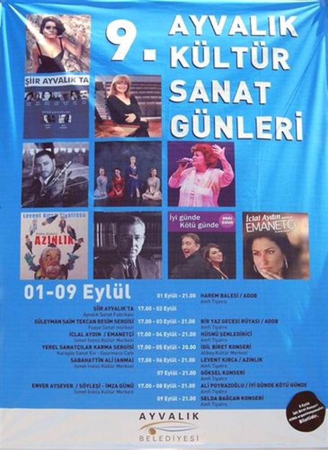 Balıkesir'in Ayvalık ilçesi Kültür ve Sanatın başkenti olma yolunda önemli adımlar atarken, Kent Konseyinin her yıl 1- 9 Eylül tarihleri arasında düzenlediği Kültür ve Sanat Günleri 11. incisini gerçekleştirmek için Ayvalık Belediye Başkanı Rahmi Gençer’i ziyaret eden Ayvalık Kent Konseyi Başkanı Ahmet Üzgeç’in ve yürütme kurulu üyeleri bu seneki sanatsal etkinliklerde yerli sanatçıların yer alacağı bilgisi verildi.