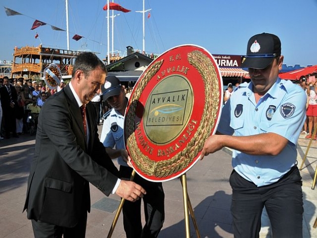 Ayvalık Cumhuriyet Meydanında Ayvalık Kaymakamlığı, Ayvalık Garnizon Komutanlığı ve Ayvalık Belediyesi ile derneklerin Atatürk Anıtına çelek sunmaları ile başlayan 92. yılı kutlama törenleri saygı duruşunda bulunulup İstiklal Marşı'nın okunmasıyla devam etti. Günün anlam ve önemini içeren şiirler Altınova Merkez İlk Öğretim Okulu öğrencileri tarafından okundu.