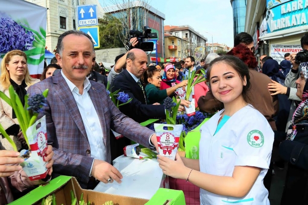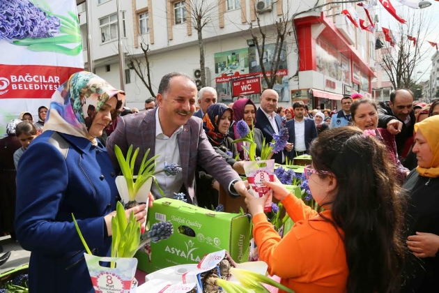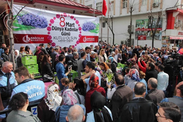 Bağcılar, her yıl olduğu gibi bu yıl da 8 Mart Dünya Kadınlar Günü’nde farklı bir etkinliğe ev sahipliği yaptı. Bağcılar Belediyesi tarafından başta Bağcılar Meydanı ve Güneşli Meydanı olmak üzere ilçenin değişik noktalarında kadınlara sümbül dağıtımı gerçekleştirildi. Sümbül Dağıtım Töreni’nde bir konuşma yapan Bağcılar Belediye Başkanı Lokman Çağırıcı hizmetlerinde her zaman kadınlara öncelik tanıdıklarını ifade etti. Çağırıcı, “Kadınlar toplumun mihenk taşıdır. Onlar ülkemiz ve milletimiz için her zaman fedakarlık göstermişlerdir. Nasıl ki, Kurtuluş Savaşı ve Çanakkale Zaferi’nde mermi taşıdılar, yaraları sardılarsa yine 15 Temmuz gecesi de üzerlerine düşeni fazlasıyla yaptılar. Hainlerin açtığı ateş sonucu 7 kadın şehit düştü. Onlara da Allah’tan rahmet diliyorum” dedi.