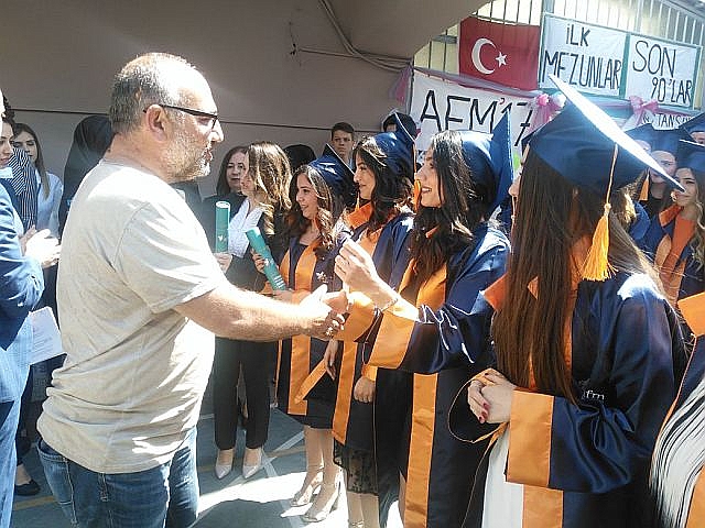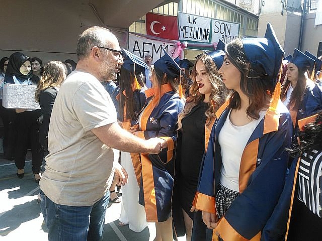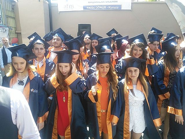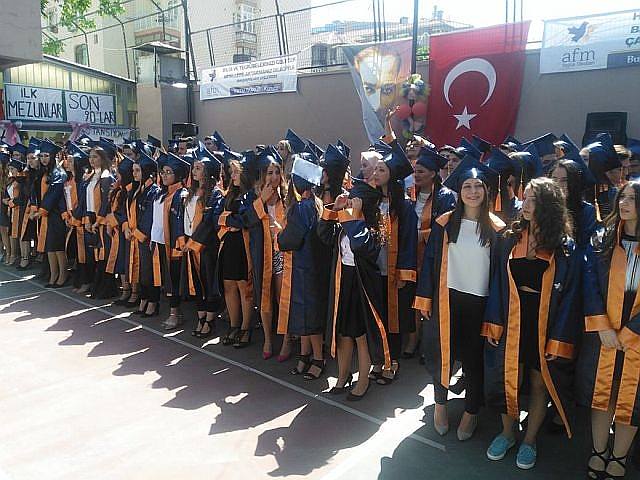 Güngören Bahçelievler AFM Sağlık okulları sırasıyla ilk mezunlarını verirken yapılan diploma ve kep törenleri ile hayata ilk adımlarını atmaya başladılar. Bahcelievler Afm Sağlık Okulları 133 hemşire mezunuyeti ile bir ilki yaşamanın haklı gururunu yaşadı. Yeni açılan Asil Eğitim Kurumları bahçesinde yapılan törene okul öğrencileri ve aileri çoşkulu bir şekilde katıldılar. Yapılan törende program sunuculuğunu okul öğretmenlerden Samet Akan yaparken okul müdürü Burhan Boyraz selamlama konuşmasında " Bugün burada atılan tohumlar meyvesini vermeye başladı. Her mezuniyet bir başarının basamağıdır. Hepinizin bir hedefi vardır. Önümüze çıkacak engellere rağmen hedefinize koşacaksınız. Milli ve manevi duygulara sahip olunuz. Saglığınız mutluluğunuz isterken, dogru, dürüst ve adil olmanızı diliyorum" dedi. Törende bayrak teslim töreni yapılırken mezuniyet kütüğüne okul birincisi Sevgi Şenol ilk mezuniyet civisini çaktı. Programda hazır bulunan AFM ve Asil Okulları koordinatörü Yavuz Sayarlı, Okul Müdürü Burhan Boyraz, Bahçelievler Asil Eğitim Kurumları Müdürü Sencer Şen okulun öğretmenleri, öğrencilerin diplomalarını tek tek takdim ettiler. Öğrencilerin diploma sevinci gözlerinden okunurken veriler de bu heyecana ortak oldular.