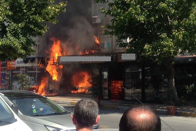 Bahçelievler Deli Hüseyin Paşa caddesi üzerindeki bir binanın altında bulunan pastanede henüz bilinmeyen bir nedenden dolayı yangın çıktı. Alevler kısa sürede pastanenin üst katındaki daireye sıçradı. Daride bulunan iki çocuk yakınları tarafından son anda kurtarılarak olası bir facianın önüne geçilmiş oldu.