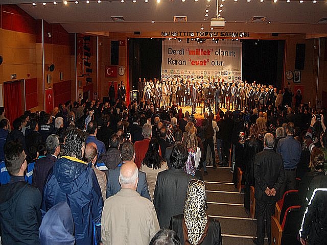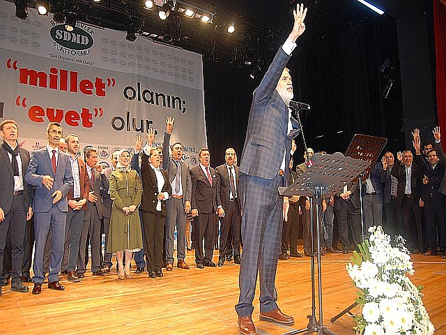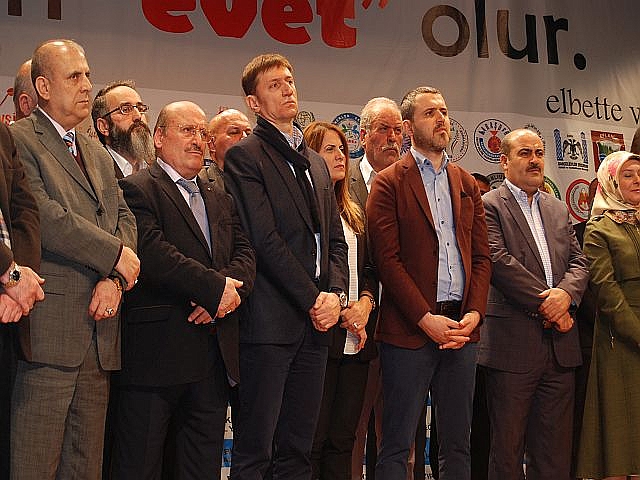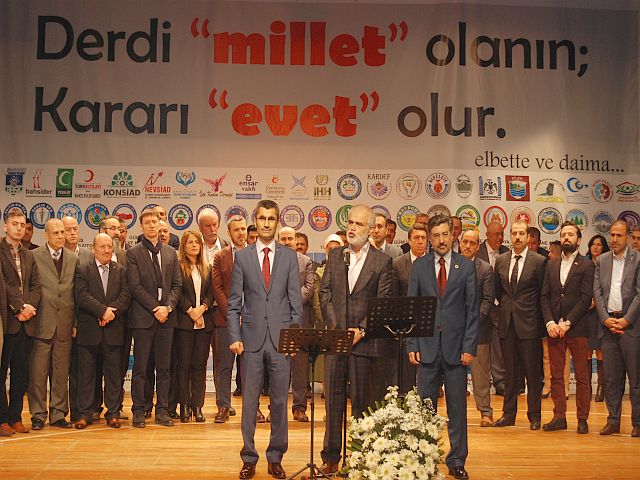 Bahçelievler'de bulunan 600'ü aşkın dernek ve 140 çatı kuruluşlarıyla beraber istişarelerden sonra hazırlanan basın bildirisi Bahçelievler Nurettin Topçu Kültür Merkezinde coşkulu bir kalabalığa okundu. Bahçelievler'de bulunan hemen hemen tüm dernek ve çatı kuruluşların imza attığı bildirisi Bahçelievler SDMD Sözcüsü Yusuf Yıldırım tarafından okundu. Basın bildirisi katılımcıların alkışlarıyla sık sık kesildi ve coşkulu kalabalığın tezahüratları salonu inletti. Dernek başkanlarını sahneye alındıktan sonra 16 Nisan'da yapılacak referandum sürecinde duruşlarını göstermek için hazırlanan Milletin Sesi bildirgesinde, ''Türkiye kendi anayasasını da kendi yönetim şeklini de kendisi yapacak güçtedir. Türkiye kendi silahını, kendi tankını, kendi İHA'sını üretmeye, kısacası istikbalini bizzat kurmaya başladığından beri ve bundan dolayıdır ki, her biri bir yandan asırlık kin, nefret ve düşmanlıklarını çirkefçe ve alçakça ortaya koymaktadırlar. Bu sebepledir ki bizi ithal vesayetin zilleti altında bırakan devşirme anayasa ve buna bağlı devlet düzeninin üzerimize serptiği ölü toprağından silkinip kendi ruh kökümüz ile beslenen yerli ve milli anayasaya; devlet-i ebed müddet için ve dahi 15 Temmuz'ların artık yaşanmaması ve Ömer Halisdemir'lerin ruhunun şad olması için bütün bir Bahçelievler ve topyekün millet olarak Evet diyoruz'' ifadeleri kullanıldı. Bahçelievler Kent Konseyi Kadın meclisi Başkanı Fatma Çınar, Kuzey Yıldızı Trabzonlular Derneği Başkanı İsmail Turgut Öksüz, Bahçelievler Trabzonlular Derneği Başkanı Selami Aykut ve ismini sayamadağımız bir çok dernek başkanı, çatı kuruluşları ve basın mensupları bu önemli günde yerlerini aldılar.