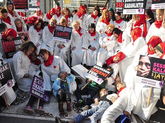Fatma Çınar başkanlığındaki Bahçelievler Kent Konseyi Kadın Meclisi, Kadına Yönelik Şiddete Karşı Uluslararası Mücadele Gününde Bahçelievler Metro İstasyonu önünde toplanarak hep birazdan kadına karşı şiddete DUR denildi. Bahçelievler Kadın Meclisi'nden 60 Kadın beyaz kefenlerini giyerek 1 dakika boyunca yerde hareketsiz kalarak kadına şiddete olan tepki ortaya konuldu. Yapılan basın açıklamasında kadına karşı şiddetin gün geçtikçe arttığı ve kadınların yaşama haklarınının güvence altına alınması için gerekli tedbirlerin acilen arttırılması gerektiği ifade edildi. Hep bir ağızdan ''Kadına Şiddete Hayır'' ve Özgür Kadın Özgür Dünya'' sloganları atılarak kadına karşı şiddete tepki gösterildi. Yapılan basın açıklamasından sonra ölen kadınların anısına vatandaşlara karanfil dağıtılı lokma ikram edildi. Karanfilleri Başkan Fatma Çınar bizzat özellikle erkeklere dağıtarak eşlerine götürmelerini ve kadına şiddete karşı gelmelerini istedi.