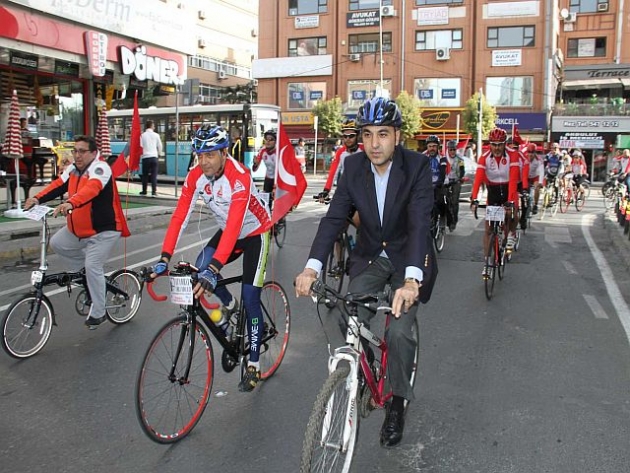 Bakırköy Belediye Başkanı Dr. Bülent Kerimoğlu da bisikletiyle Bakırköy çıkışına kadar bisikletlilere eşlik etti.