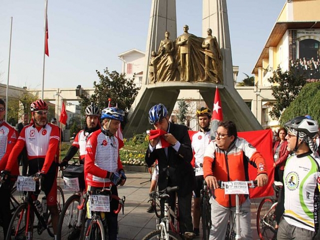 81 ilden de gelecek binlerce bisikletliler, 81 ili temsil edecek 81 Türk bayrağını Anıtkabir Komutanlığına teslim edecekler.