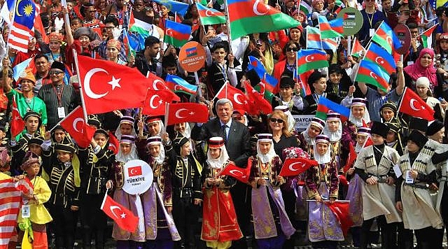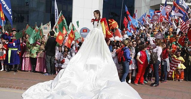 Dünyaya barış ve kardeşlik mesajları veren 41 ülkeden gelen çocuklar, Saat Kulesi’nden başlayıp Büyükşehir Hizmet Binası’nın önüne kadar geleneksel kıyafetleriyle Kocaelilileri selamladı.