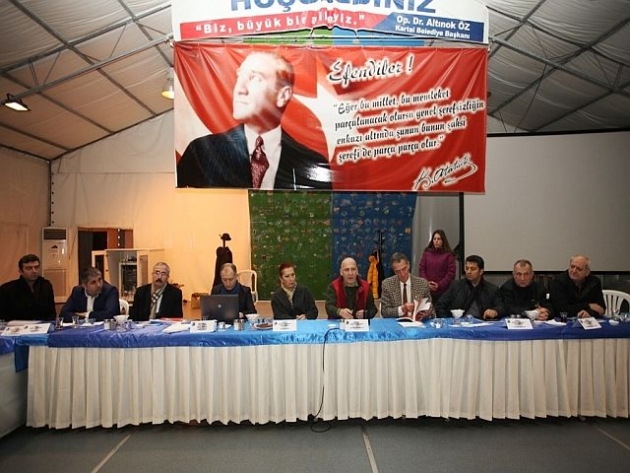 Kartallı vatandaşların sorunlarının, sıkıntılarının ve mahalleler genelinde tespit edilen şikâyetlerin değerlendirildiği ve Kartal Belediye Başkanı Op. Dr. Altınok Öz’ün başkanlığında gerçekleştirilen 83. muhtarlar toplantısında; CHP Konya Milletvekili Mustafa Hüsnü Bozkurt, Şehir Plancısı Faruk Göksu, Kartal Belediyesi Meclis Üyesi Taner Özdemir, Kartal Belediyesi Başkan Yardımcıları Gülcemal Fidan, Mustafa Fehmi Okay, Ali Apaydın, Feyyaz Kaynak, Özel Kalem Müdürü Cem Çetin, Çavuşoğlu Mahallesi Muhtarı Arif Koç, Hürriyet Mahallesi Muhtarı Ferhat Aslan, Yakacık Yeni Mahalle Muhtarı İlhan Düzülütaş, rhantepe Mahallesi Muhtarı Zeki Dağ, Cevizli Mahallesi Muhtarı Memiş Dikilitaş, Gümüşpınar Mahallesi Muhtarı Miktat Gürsel, Yalı Mahallesi Muhtarı İsa Durmuş, Topselvi Mahallesi Muhtarı Ramazan Keklik, Esentepe Mahallesi Muhtarı Recep Elvan, Uğur Mumcu Mahallesi Muhtarı Soner Eker, Cumhuriyet Mahallesi Muhtarı Mustafa Koç, Yukarı Mahalle Muhtarı Ünal Özuğurlu ve Kordonboyu Mahallesi Muhtarı Arzu Keskin yer aldı.
