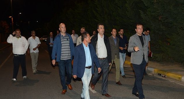Gece 22.00’da başlayan inceleme gezisinin ilk durağı Belediye binası karşısındaki koruluk alan oldu. Çamlıkta karanlık kalan bazı noktaların aydınlatılması ve gerekli tedbirlerin alınması noktasında Emniyet Müdürü Özcan Yanmaz ile fikir alışverişinde bulunan Belediye Başkanı İmamoğlu, aydınlatmanın arttırılmasının yanında belirlenen noktalara MOBESE kamerası konulması hususunda da değerlendirmeler yaptı.