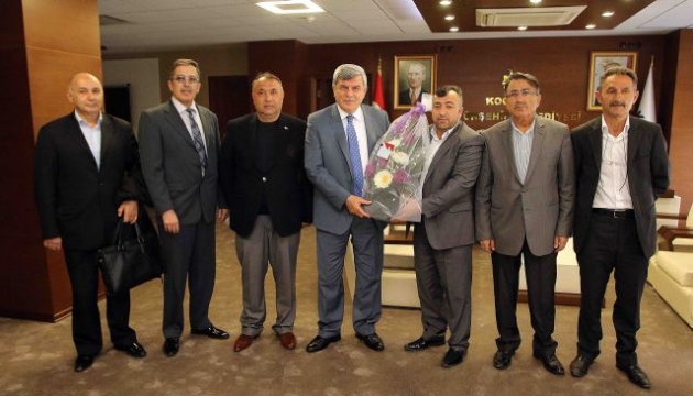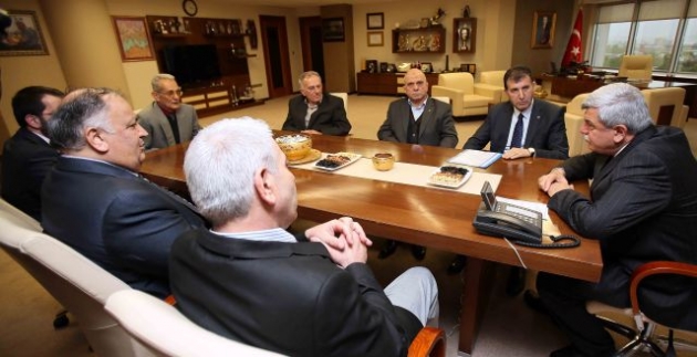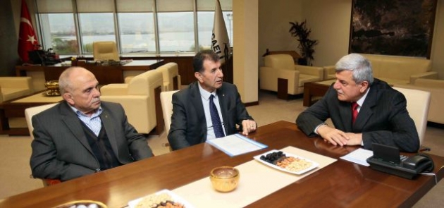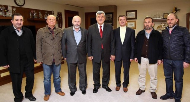 Otogar Esnafı Derneği Başkanı Halil Baylam, Kocaeli Meyve ve Sebze Komisyoncuları Tüccarları Derneği (KOMESKOM) Başkanı Hüseyin Balkaya ve Gebze Yeni Oto Küçük Sanayi Sitesi Kooperatif Başkanı Ömer Emiroğlu ile yönetimleri, Kocaeli Büyükşehir Belediye Başkanı İbrahim Karaosmanoğlu’na konuk oldular. Kentin esnafıyla her ortamda bir araya gelen ve eksikliklerin giderilmesi noktasında çalışan Başkan Karaosmanoğlu, “Kentimizin faydasına olan her işte beraberiz. Şehrimizin önünü açacak projeleri üreterek, geleceği daha iyi olan ve yaşam kalitesi yukarılara çıkmış bir şehri esnafımızla birlikte oluşturma çabasındayız. Gerek ulaşım gerek gıda gerekse üretim alanında olmak üzere halkımız sizlerden ve bizlerden en iyi hizmeti almalıdır. Buda kentin tüm dinamiklerinin çok iyi organize olmasıyla gerçekleşebilir. Kentimizi bu noktada iyi bir noktaya getirdik. Ancak bu durumu sizle beraber daha yukarılara taşıyacağız” dedi.