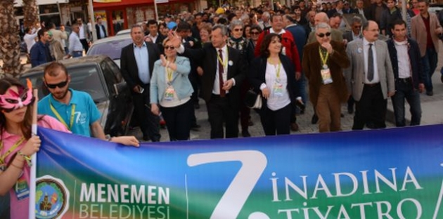 Ülkemizin önde gelen tiyatro organizasyonlarından biri haline gelen ve Menemen Belediyesi’nin bu yıl 14-18 Nisan tarihleri arasında 7.’sini gerçekleştirdiği İnadına Tiyatro Festivali, “İnadına Tiyatro, İnadına Sanat” söyleminin yankılandığı coşkulu Kortej Yürüyüşü ile başladı.