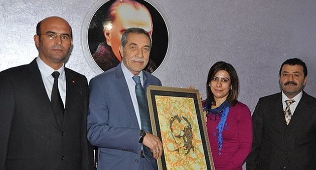 Atatürk Ortaokulu Müdürü Yusuf Öntürkler, Başkan Özdemir’i makamında ziyaret ettiklerini belirterek okul olarak kendilerine verdikleri birçok destekten dolayı okulun Görsel Sanatlar Öğretmeni Sakine Taş’ın öğrencilerle yaptığı ebru üzerine çizgi çalışması ile oluşturdukları Gazi Mustafa Kemal Atatürk portresini hediye ettiklerini söyledi.