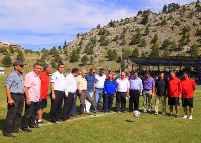 Aslan daha sonra turnuvanın ilk maçı olan Emelcikspor- Çakallıspor maçının başlama vuruşunu yaparak turnuvaya start verdi.