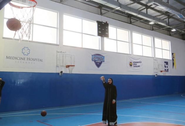 İndira Kaljo ziyaretin ardından Güneşpark Evleri Kız Anadolu İmam Hatip Lisesi spor salonunu gezdi. Lisenin basketbol takımı öğrencileriyle birlikte atış yaparak, basketbol oynayan Kaljo, onlarla sohbet etti.