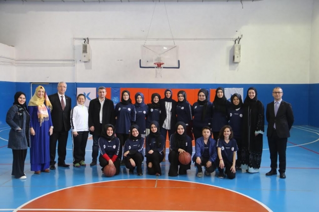 Uluslararası Basketbol Federasyonu’na (FIBA) başvuru yaparak başörtülü basketbol oynamanın yolunu açan başörtülü kadın basketbolcu İndira Kaljo, Başkan Karadeniz’e başörtülü sporculara destek verdiği için teşekkür ziyaretinde bulundu. İndira Kaljo’ya Küçükçekmece’de eğitim veren TOKİ Güneşpark Evleri Kız Anadolu İmam Hatip Lisesi öğrencilerinden oluşan basketbol takımı ve Küçükçekmece Basketbol Gençlik ve Spor Kulübü sporcusu Merve Şapçı’da eşlik etti.