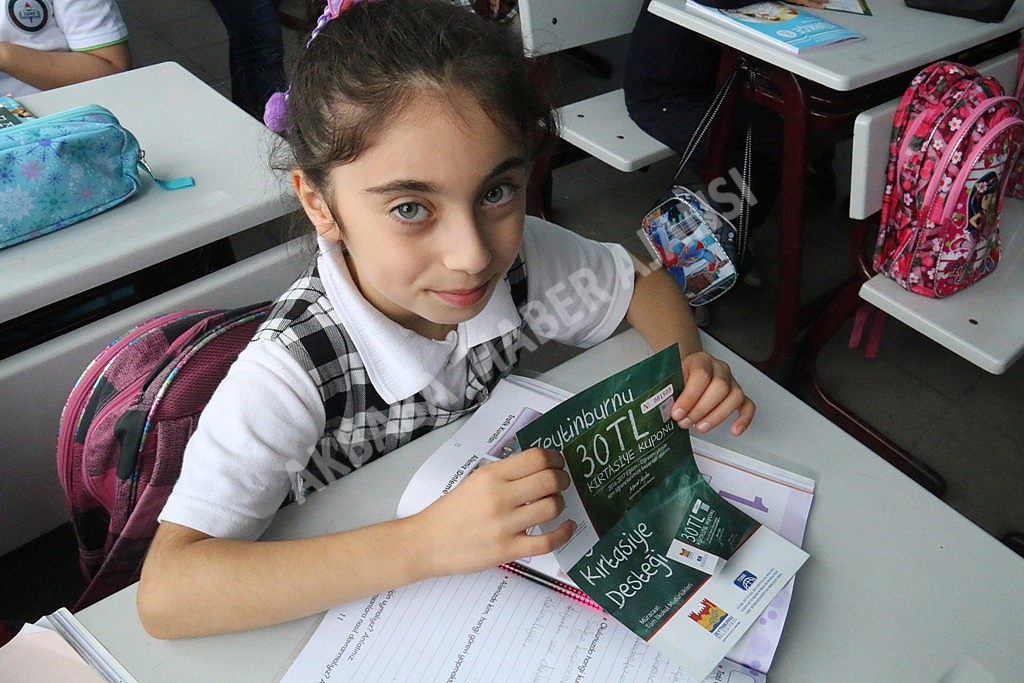 Her gün farklı okullarda 30 liralık kırtasiye çekinin ve defterlerin dağıtıldığı projede öğrencilere verilen çeklerin üzerinde öğrenci adına düzenlenen seri numaralar yer alıyor. Üzerlerindeki seri numaralar sayesinde ilçedeki anlaşmalı kırtasiyelere kimlikleriyle birlikte giden öğrenciler, kuponların geçerli olduğu kırtasiyelerden belirtilen miktarda alışveriş yapabiliyor. Velilerin yüzünü güldüren uygulamadan en çok da dar gelirli aileler memnun.