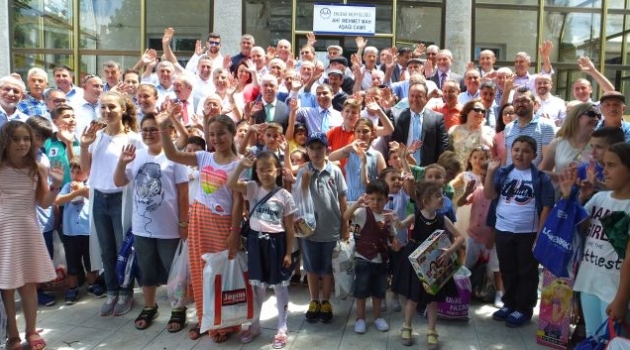 Ergene Belediye Başkanı Rasim Yüksel” 11 ayın Sultanı Ramazan ayında 17 mahallemizde 27 bin vatandaşımızla beraber oruçlarımızı açtık. Allah tutuğumuz oruçları verdiğimiz sadakaları kabul etsin. İşte gördüğünüz gibi bu birlik ve beraberlik bayramda da devam ediyor. Gördüğünüz gibi geleneğimizi göreneğimizi hep birlikte yaşatıyoruz. Geleceğimiz olan çocuklarımızla birlikte bayramımızı kutluyoruz. Ben bütün halkımızın bayramını kutluyorum” dedi. Hediyelerini alan çocuklar çifte mutluluk yaşarken, çocukların aileleri de bu mutluluklarına ortak oldular.