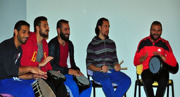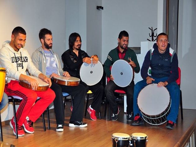 Manisa Büyükşehir Belediyespor futbol kulübü oyuncularına yönelik uygulanan ritim terapi grup çalışması, Atatürk Gençlik Merkezi’nde konservatuar eğitmenlerinden Bedirhan Diyarbakırlı ve Efe Çıraklar’ın eğitmenliğinde verildi. Ritim terapi grup çalışmasını, Gençlik ve Spor Şube Müdürü Orhan Haşim Elmalı, Atatürk Gençlik Merkezi Sorumlusu Duygu Karataş ve Büyükşehir Belediyespor Teknik Direktörü Hakan Şapçı ve yetkililer izledi. Sporcuların müsabakalara hazırlanmasında etkili bir yöntem olan ritim terapi grup çalışması, gevşemeyi öğreten, konsantrasyonu geliştiren ve sporcunun iç benlik duygusunu kuvvetlendiren bilinçli bir düşünsel strateji çalışması olması nedeniyle tercih ediliyor. Bu kapsamda Büyükşehir Belediyespor futbol branşındaki oyuncularla yapılan çalışma ile oyuncuların müsabakalara hazırlanırken stres atmasını ve daha uyumlu çalışmalarını sağladıklarını belirten konservatuar eğitmenleri, bu tür çalışmaların düzenli olarak devam edeceğini belirtti. Darbuka, def, davul, bendir, kaşık, tumba ve bongo gibi enstrümanlarla tanışma fırsatı bulan futbolcular, konservatuvar eğitmeni Bedirhan Diyarbakırlı’nın komutlarıyla hem kendi müziklerini yaptılar. hem de eğlenceli bir gece geçirdiler