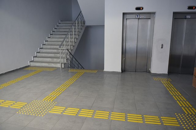 Başta görme engelli, yaşlı, çocuk ve hamileler olmak üzere vatandaşların bina içerisinde rahat ve güvenli bir şekilde erişebilirliğinin sağlanması amacıyla, uyarıcı kılavuz yüzey ve şeritler, kabartma levhalar, kaydırmaz bantlar ile asansörlere sesli bildirim sistemi yapıldı.