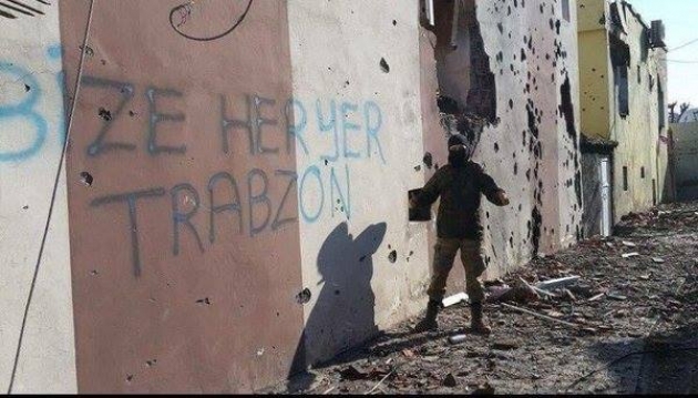 Trabzonlu komutan Cizre’de delik deşik olmuş duvara, “Bize her yer Trabzon” yazması duygulandırdı. Trabzonlu hemşerileri de aynı şekilde sosyal medyadan,” Selamını aldık komutanım” diyerek cevap verdi.