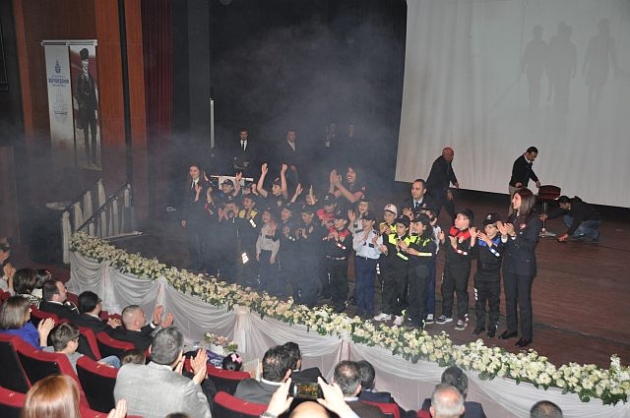 İlçe emniyet müdürü Ercan Çamırcı'nın özel projesi olan 10 Nisan polis haftası münasebeti ve 23 nisan çocuk bayramı kapsamında Çocuk gözüyle polis kısa film galası Erdem beyazıt kültür merkezinde yapıldı. Mavi Fikirler yapım fatih Özbey tarafından üstlenen Yaklaşık 6 ay süren bir çalışma ile okullarda 20 çocuk belirlenerek onlara film çekme teknikleri gösterilip senaryolarınında çocukların kendilerinin yazıp oynadığı 20 film galada gösterime girdi. Adeta istanbul emniyet müdürlüğü ve ilçe emniyet müdürlerinin Güngören'e çıkarma yaparcasına katıldığı film galasında hem duygusal anlar yaşandı, hemde başarılar ödüllendirildi. Galanın sunuculuğunu Mert Öğün'ün yaptığı kısa film galasında gösterime giren filmler tek tek seyire sunuldu. Açılış konuşmasında Ercan Çamırcı "Bu projeyi yapmakda amacımız Çocuklarımızn zihnindeki saf ve masum anlayışdan yola çıkarak Çocukların gözü ile polis nedir ve nasıl gözüküyor? Bu soruların cevabını ortaya çıkartarak polislik anlayışımızın gelişmesine katkısı olurmu bunu görmekdi. Çünkü çocuklar masumiyetin, saflığın simgesidir. "dedi. Galaya katılan ilçe kaymakamı Zafer Orhan'da konuşmasında " Çocuklar umutlarımızdır. Ülkemizin ve bizim geleceğimizdir. Bu projeye emeği geçen herkese teşekkür ediyorum. Ayrıca polis bayramınızı kutluyorum. Çok özverili çalışıyorsunuz. Bu toplum sizlerin sayesinde huzurlu uyuyor. Fedekarca görev yapmış şehitlerimiz ruhlarıda şad olsun"dedi. Regaip kandili olmasından dolayıda katılımcıların kandilini kutladı. Filmlerin gösterimi sonrasında emeği geçenlere plaketler verildi. Çocuklarda ggalanın anısına heö plaket hemde madalyon alarak geceye damgasını vurdular.Galanın sponsorları olan Kale Center yönetim kurulu üyesi Alp Gürün'e ve Mega tekstil yönetim kurulu başkanı Selahattin Sarı'ya plaketler taktim edildi. Geceye İl emniyet müdür yardımcılarından Selami Türker,Bahattin Küçük, Murat Ulucan ve Eşi, Erkin Adalar ve Eşi, Haydar Karsavuranoğlu, Reşat Demirel,Güngören'de eski ilçe emniyet müdürlüğü yapmış Organize şube müdürü Ömer Burak Aktaş ve eşi, Muhabere elektronik şube müdürü ümit Tazecan ve oğlu, Güven timleri şube müdürü Erhan Alemdar ve yardımcısı Zafer Baybaba, Basın halkla ilişkiler şube müdürü ve aynı zamanda Sultangazi ilçe emniyyet müdür vekili Haydar özdemir, Fatih İlçe emniyet müdürü Murat Şahin ve oğlu, Bayrampaşa lçe emniyet müdürü Aytekin Uyar ve eşi, Kadıköy ilçe emniyet müdürü Kenan Kurt ve eşi, Bağcılar ilçe emniyet müdürü Erdem Bursalı, geceye katılarak renk kattılar.. Emniyeti güçlendirme dernek başkanıda olan iş adamı Bahadır grup yönetim kurulu başkanı Saim Bahadır, İlçe milli eğitim müdürü Yusuf Kahraman, Zenginli otomotiv yönetim kurulu başkanı Kamil Zenginli, Karaman Ayrancı dernek başkanı Hüseyin Uyanık , İkevKaramanlılar vakfı başkanı Suat Yıldırım ve başkan yardımcısı Adem Kırnaz gecede hazır bulunurken ilçe emniyet müdürlüğü yardımcısı Oğuz Kaan ile amir ve memurları tam kadro gelen misafirlerini ağırlayıp uğurladılar. Gösterimde bulunan filmlerin konuları hep değişik olması münasebetiyle her filmi seyir eden katılımcılar heyecan yaşadılar. Küçük çocukların gözünde polis imajını bir aile, bir dost ve arkadaş olarak algıladıklarını gösterdi. Kale Center yönetim kurulu üyesi Alp Gürün gala gecesini değerlendirirken "Seyrettiklerimiz çok samimi. Çocukların duygularını yansıttığını düşündüm. Çok isabetli buldum"dedi. Sanatcı Olcak Bolelli ise geceye katılarak polise verdiği destek şarkısını çocuklarla beraber seslendirirken geceye renk kattı.