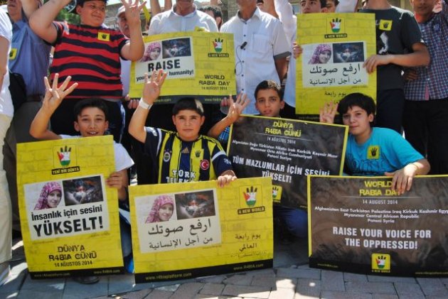 Ey İnsanlık! Ey Ümmet! Bugün 14 Ağustos Rabia Günü. Hep birlikte ayağa kalkacağız. Huzurun, barışın, kardeşliğin ve adaletin hâkim olduğu yeni ve adil bir dünya kuracağız” şeklinde konuştu.