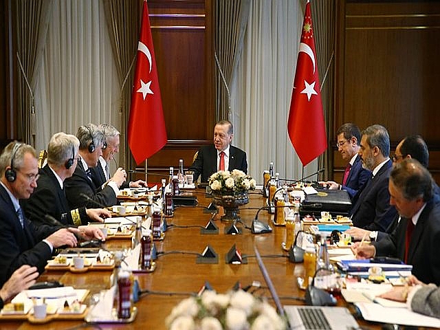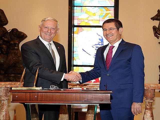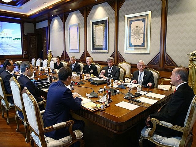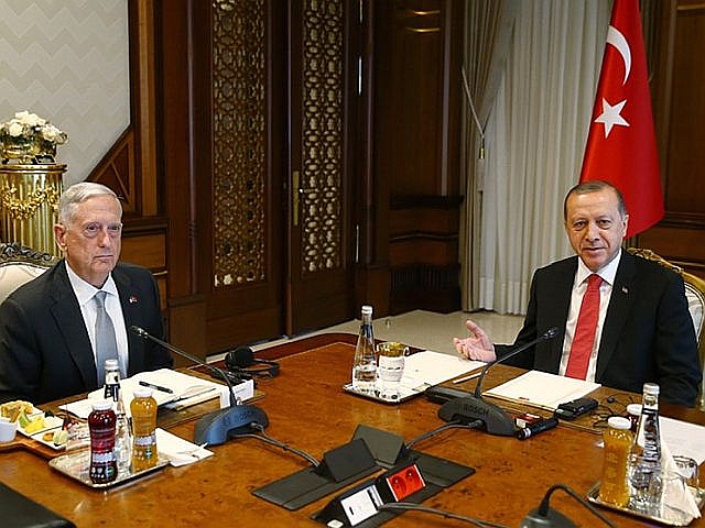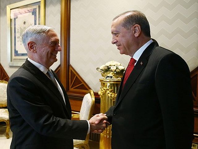 ABD Savunma Bakanı James Mattis Cumhurbaşkanı Recep Tayyip Erdoğan ile Cumhurbaşkanlığı külliyesinde görüştü. Savunma Bakanı James Matties ve beraberindeki heyet Ankara Esenboğa Havalimana indikten sonra Milli Savunma Bakanlığına geçtiler. Milli Savunma Bakanı Nurettin Canikli mevkidaşı Mattis'i askeri törenle karşıladı. Karşılamanın ardından iki savunma bakanı başbaşa görüştüler. Görüşmenin bitmesinin ardından ikili beraberlerindeki heyetle Cumhurbaşkanlığına geçtiler.