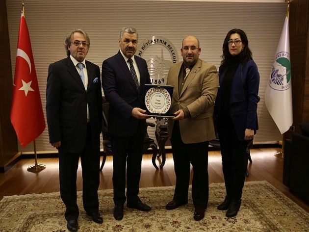 Anadolu Yerel Yönetimler Dergisi Genel Yayın Yönetmeni Mehmet Oğuz, Büyükşehir Belediye Başkanı Mustafa Çelik'i ziyaret etti. Oğuz, ziyarette Başkan Çelik'e dergilerinin plaketini ve Cumhurbaşkanı Recep Tayip Erdoğan'ın bir tablosunu takdim etti. Mehmet Oğuz, Başkan Çelik'e gittikleri her ilde Kayseri'nin belediyecilik modelinin konuşulduğunu söyledi.