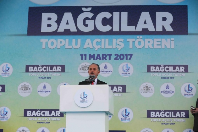 İstanbul Büyükşehir Belediye Başkanı Kadir Topbaş ise 1993 ve 1995 yıllarında Bağcılar’da ilçe başkanlığı yaptığını hatırlatarak, her yerini dolaştığını kaydetti. Topbaş, “Cumhurbaşkanımızın liderliğinde Türkiye kalkınıyor. Birçok entrikaları tezgahlayan iç ve dış düşmanların hilelerini onun önderliğinde boşa çıkardık. Rüzgar hangi yönden eser essin gemisini rotasında yürüten kaptanımız var. Onun mesai arkadaşı olmak bizim için en büyük gurur” dedi. Bağcılarlıların önlerine her sandık geldiğinde Cumhurbaşkanı Erdoğan ile kendilerinin hizmet aşkına ‘evet’ dediklerini de kaydeden Topbaş, “Türkiye’nin geleceği ve devletin bekası adına yine ‘evet’ diyeceksiniz. Bu kararlılığı göstereceksiniz. Milletle el ele vererek bu ülkenin hak ettiği yere taşınmasında tuğla olmaya hazırız” şeklinde konuştu