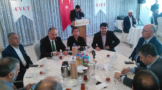 Raferendum sandık yarışına çeyrek kala Darende Dernekler federasyonu ve Golden Way oteli davetlisi olarak Malatya Darendeliler bir araya geldi.istanbul milletvekili Halis Dalkılıç ile çok sayıda misafirlerin katıldığı davette Dadef federasyon başkanı Hulusi Eser ve Golden Way oteli yönetim kurulu başkanı Erdal Oğuz gelen misafirlerini tek tek karşıladılar. Kuranı Kerim tilaveti ile başlayan Selamlama konuşmasında milletvekili Halis Dalkılıç yapılacak seçimlerin millet meselesi olduğunu parti meselesi olmadığını gelecekde yönetim sisteminin ne olacağını, bu mevcut sistemin kavgadan başka bir şey getirmediğini dile getirdi. Geçmiş liderlere bu sistemin yaptıklarını tek tek dile getirerek sakıncalarını ve milletin geleceğine engel olduğunu dile getirdi.