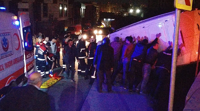 İş çıkışı hareket eden araçlar kavşakta birbirlerini fark edemeyince kazaya davet çıkardılar. İki araç Giyimkent içerisinde kavşakta birbirlerinin fark edemeyince Çarpışma sonucu minibüs takla attı. Minibüsteki şahıs sıkışınca yardıma itfaiye araçları yetişti. İtfaiyenin yardımıyla çıkarılan yaralı 112 ambulansla hastaneye kaldırıldı. Vatandaşların yardımıyla ters dönen araç düzeltildi.