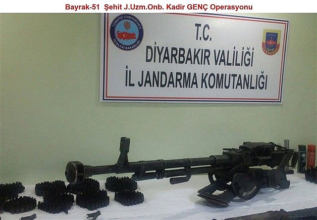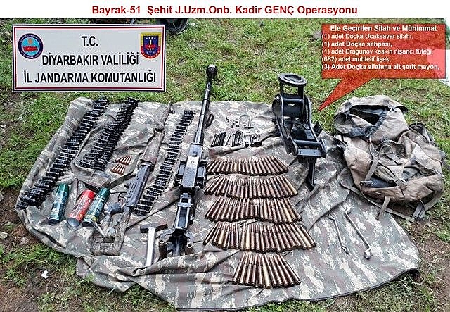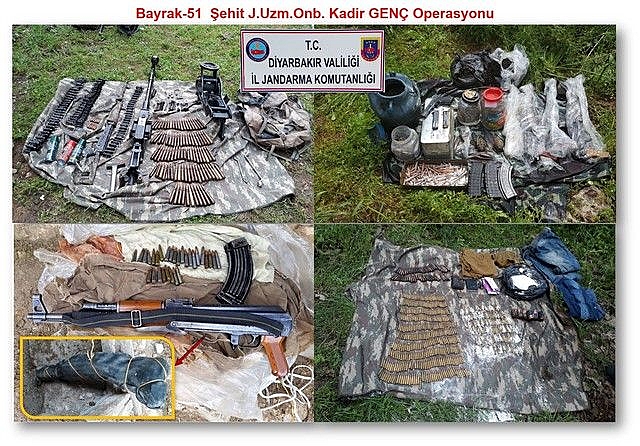 Diyarbakır İl Jandarma Komutanlığı ekipleri dün akşam saatlerinde sonlandırdıkları 'Bayrak-51 Şehit J.Uzm.Onb. Kadir GENÇ ' Operasyonu ile terör örgütü Pkk'ya ağır darbe vurdu