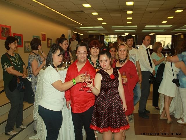 Ege Üniversitesi Eczacılık Fakültesi öğrencileri Down Sendromlu çocuklarla Ege Üniversitesi Engelliler Merkezi’nde bir araya gelerek Ebru Sanatı çalışması yaptı. Etkinliğe İzmir Down Sendromu Derneği yönetim kurulu üyeleri de katıldı. Sergiye aileleriyle birlikte gelen Baran Tanış, Bora Kırlıoğlu yaptıkları Ebru Sanatı çalışmalarını inceledi. İzmir Üniversitesi Turizm ve Otel İşletmeciliği Bölümü’nden mezun olan Deniz Ayçe Karagöz ise İzmir Down Sendromu Derneği üyesi olup çocuklar içinde ilk üniversite mezunu oldu. İzmir Down Sendromu Derneği yönetim kurulu üyesi olan Ferah Durakçay çocukların Ebru Sanatını çok sevdiklerini ve çalışma sırasında çok mutlu olup keyif aldıklarını belirtti.