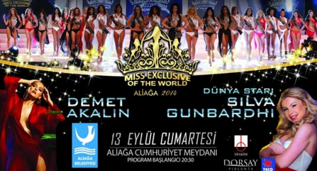 Kendi ülkelerinde düzenlenen güzellik yarışmasında taç almış ve uluslararası yarışmalarda dereceye giren 40 ülke güzeli Aliağa Cumhuriyet Meydanında kurulacak özel sahnede Miss Exclusive Of The World 2014 olmak için boy gösterecek. Oyuncu Volkan Severcan ve ekranların sevilen yüzü Özlem Yıldız’ın sunuculuğunu yapacağı gecede Demet Akalın ve Arnavut popçu Silva Gunbardhi de sahne alacak.