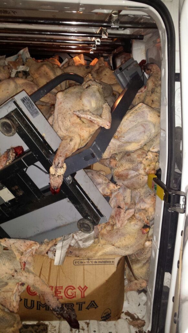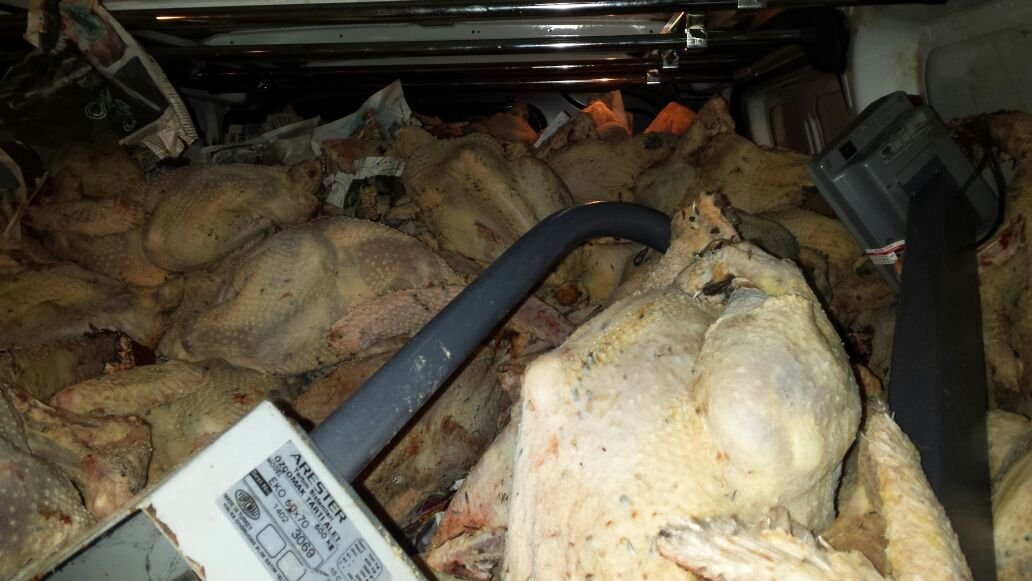 Edirne İl Jandarma Komutanlığına rutin kontrol'de araç içerisinde gıda hijyenine uygun olmayacak şekilde nakledilen (200) adet kesilip temizlenmiş hindi ele geçirilmiştir.