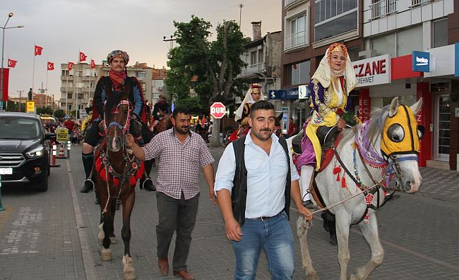 Program Öncesi Akhisar efeler ve Gençlik Spor Kulübü Akhisar efeler derneği Yönetim Kurulu ve Öğrenciler Birlikte At Üzerinde Davullu Zurnalı Belediye Önünden 15 sokak Tahir ün caddesi, Eski Belediye ve Kapalıspor salonu önüne kadar Kortej Yürüyüşü ile Salona Girdiler