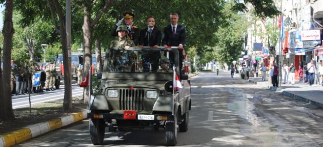 Valilik önünde düzenlenen resmi geçit töreninde ise, günün anlam ve önemini belirten bir konuşma yapan 8. Kolordu Komutanlığı’ndan Piyade Kurmay Yüzbaşı Fatih Gökşin, “Bu milletten aldığımız güç ve kuvvetle atalarımızın emaneti olan Atatürk ve onun silah arkadaşları ile güçlü ordumuzun bize miras bıraktığı, şehit kanlarıyla sulanmış aziz vatan topraklarını korumaya, bu uğurda dün olduğu gibi bugün de canımızı seve seve vermeye hazırız.” dedi.