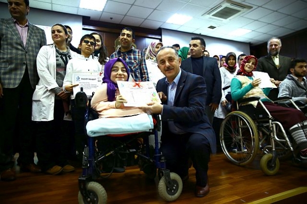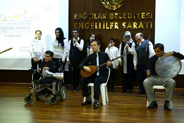Bağcılar Belediyesi Engelliler Sarayı anlamlı bir gün yaşadı. Kuaförlük, resim, el sanatları, pasta ve kek yapımı, mantar yetiştirme, ahşap atölyeleri gibi 35 branşta kurslara katılan 400 engelli kursiyer karne sevinci yaşadı.