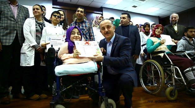 Engelliler Sarayı’nda düzenlenen programda bir konuşma yapan Bağcılar Belediye Başkanı Lokman Çağırıcı, engellilere yönelik kalıcı projeleri hizmete sunduklarını ifade etti. Engelliler Sarayı’nda meslek öğrenen engelli kursiyerler için ayrıca Engelli Kamu Personeli Seçme Sınavı’na (EKPSS) hazırlık kursu düzenlediklerini de belirten Çağırıcı şunları söyledi: “Bir eğitim döneminin daha yarısını tamamladık.Engelli kardeşlerimizi kutlarken, onlara anne şefkatiyle yaklaşan öğretmenlerimize de teşekkür ediyorum.” dedi. Konuşma sonunda engelliler, yaptıkları bir tablo çalışmasını Başkan Çağırıcı’ya hediye etti. Bağcılar İlçe Milli Eğitim Müdürü Mustafa Yılmaz iseengelli kursiyerlerin yaşadığı karne sevinci ve coşkusunu başka bir yerde yaşamadığını ifade etti