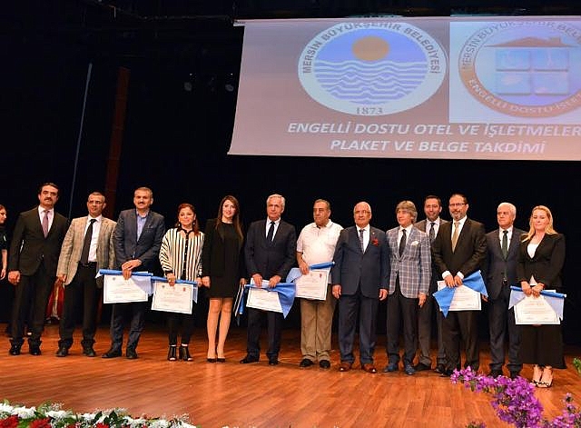 Engelli Dostu İşletme unvanı almaya hak kazanan otel, seyahat acentesi ve işletmelere teşekkür belgesi ve flama takdim edilmesinin ardından, otel temsilcileri Mersin Büyükşehir Belediye Başkanı Burhanettin Kocamaz ile hatıra fotoğrafı çektirdi.