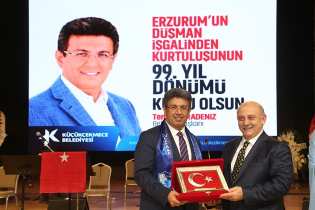 Erzurum ve Erzurumlulara hayranlığını gizleyemeyeceğini belirten Küçükçekmece Belediye Başkanı Temel Karadeniz ise “Erzurum’un vatan denince, bayrak denince göstermiş olduğu reflekslerin aşığı olan birisiyim. Allah hepinizden razı olsun çünkü Türkiye, bayrak ve vatan denince gösterdiğiniz reflekslerinizi çok yakından takip ediyor. Ben bu duyarlılığınız için hepinize çok teşekkür ediyor, bu programı düzenlemiş olmaktan gurur duyuyoruz. Her 12 Mart’ta Küçükçekmece’de buluşalım. Çünkü Küçükçekmece Belediyesi Erzurumluları seviyor, ben Erzurumluları seviyorum” şeklinde konuştu.